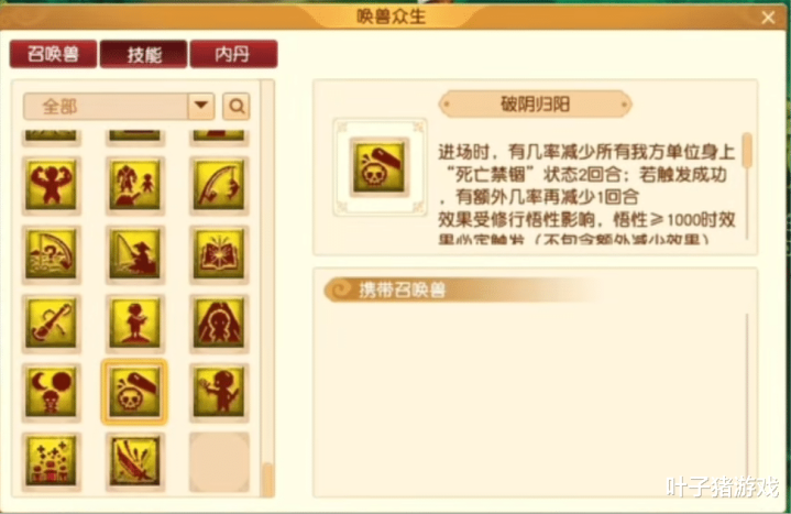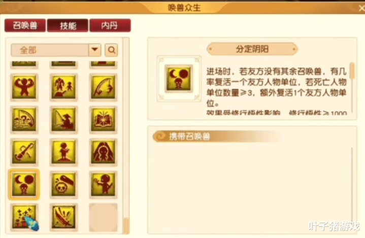 分定阴阳:就地上莫得召唤兽单元时,召唤附带此妙技的孩子可回生一个友地契元(相同需修行悟性≥1000)。在己方处于极度漏洞时,此妙技致使能一次救起两个单元,若再协作要津说念具,极有可能创造翻盘契机。
