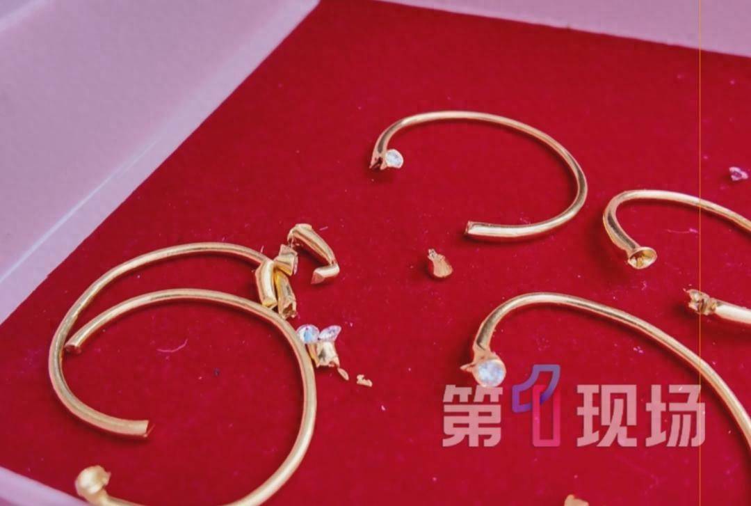 近日,广东深圳,网店店主童先生收到顾主响应,说在他店铺买的黄金手镯,断了之后竟掉出2颗钢珠,并提供了回收商发的现场监控。